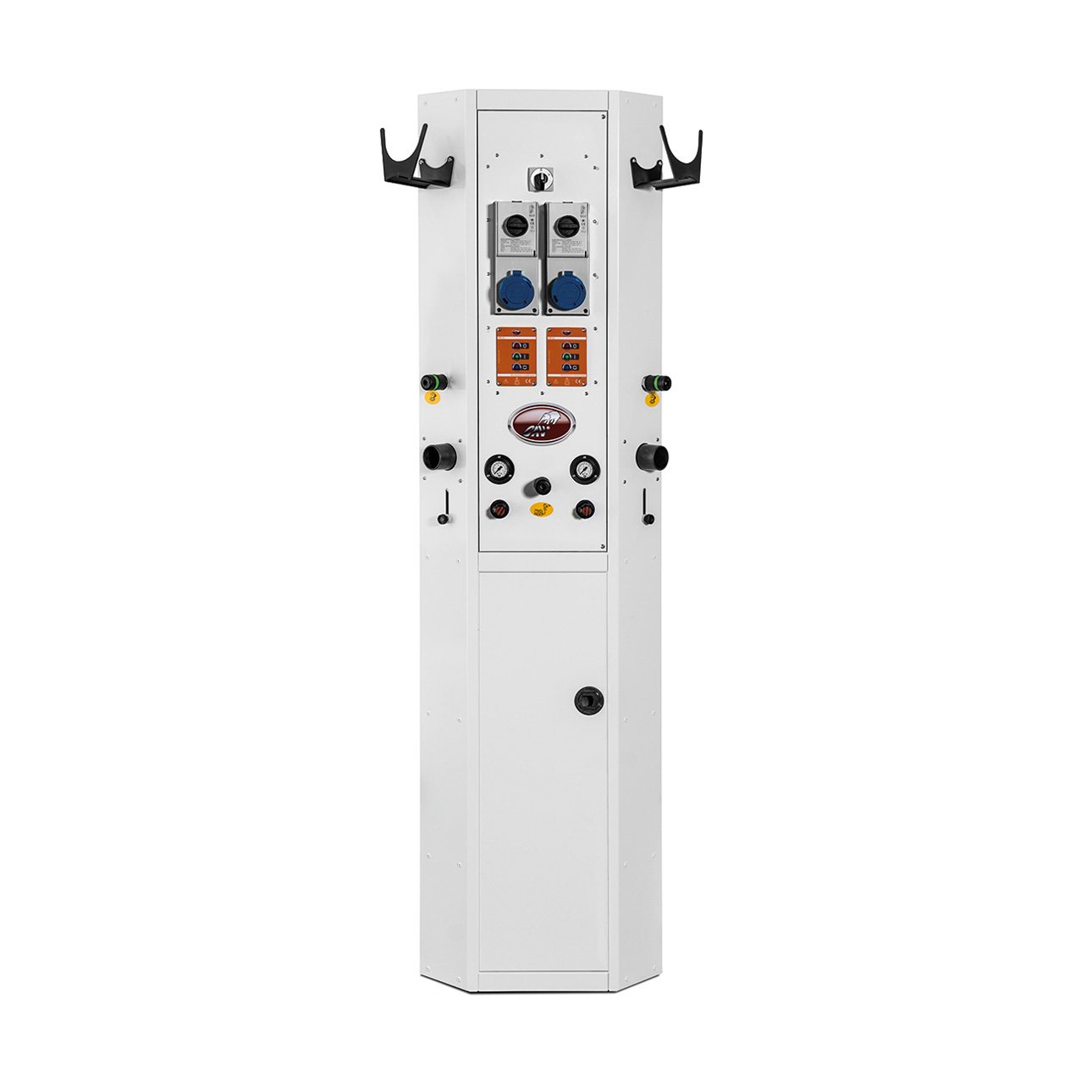 Die wirtschaftliche Lösung für acht in einer Reihe liegende Arbeitsplätze. Jeder Schwenkarm oder jede Wandkonsole deckt zwei Arbeitsplätze ab. Die flüsterleise Absaugturbine kann zwischen oder seitlich den/der Arbeitsplätze/n stehen. Das Paket beinhaltet das gesamte Montagematerial für Rohrleitungen bis zu einer Gesamtlänge von 36 Metern, sodass die Absaugturbine auch außerhalb der Arbeitsbereiche aufgestellt werden kann.